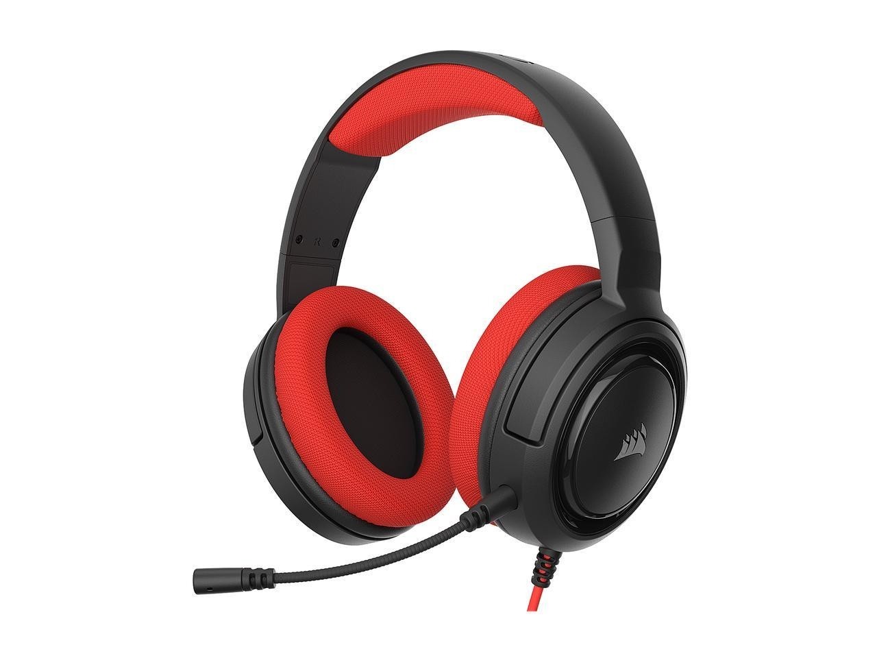 CORSAIR HS35 STEREO Gaming Headset; Red – Multi Platform compatibility 3.5mm (1to2 Splitter included) – CA-9011198-AP